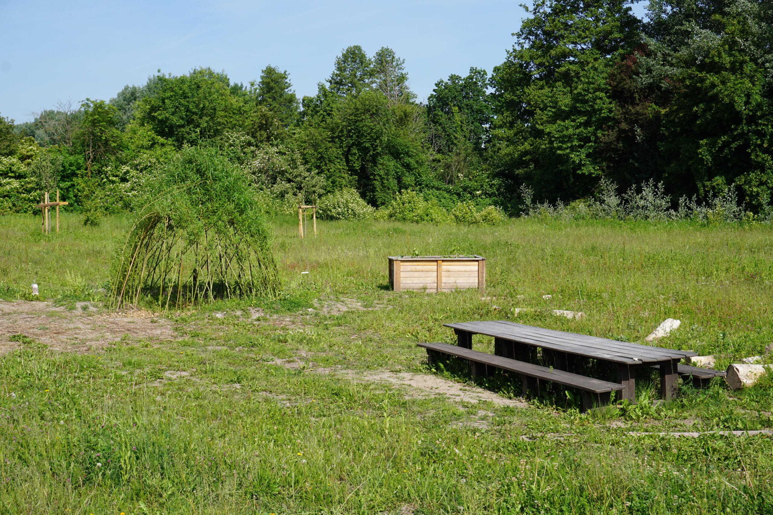Der Bauwagen dient uns zu verschiedenen Tätigkeiten im Tagesablauf als Aufenthaltsraum. Er verfügt über eine Wickelkommode, eine Sitzgelegenheit mit Tisch, einer zweiten Ebene zum Ausruhen und einer Gas/ Elektroheizung. Der Bauwagen ist geräumig genug, um einen Betrieb auch bei unbeständigen Witterungsverhältnissen aufrechterhalten zu können und dient uns als Unterschlupf für das Mittagessen in der kalten Jahreszeit.